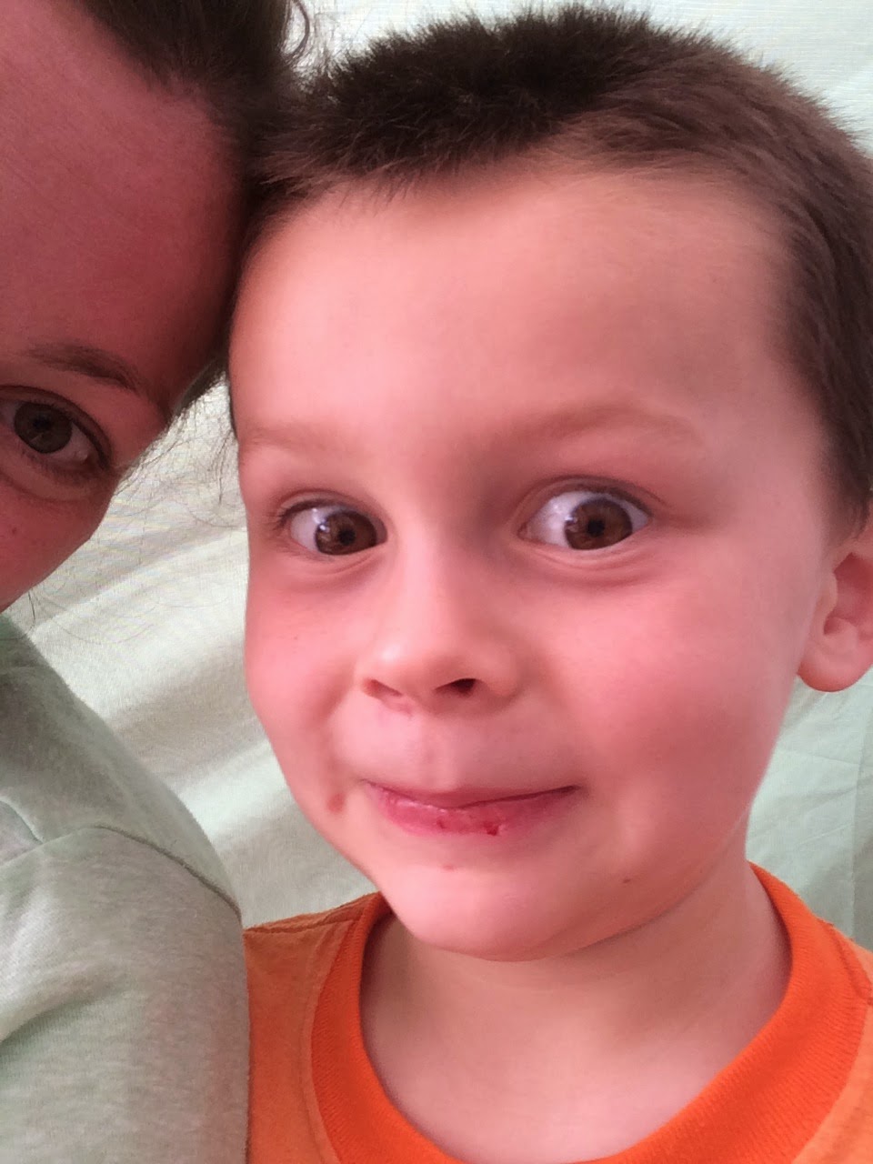 Once the drama and trauma settled he walked out with two fat lips, inside damage to his bottom lip tissue and two top teeth pushed backwards. Sigh. We head to the dentist at 2pm today and I'm pretty sure those sweet baby teeth are dead. A reality check that yep, we are still The Doozie Family haha!